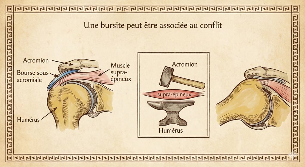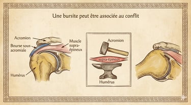 les tendinopathies calcifiantes et la faiblesse des muscles de coiffe favorisent les conflits.