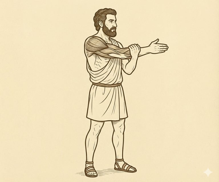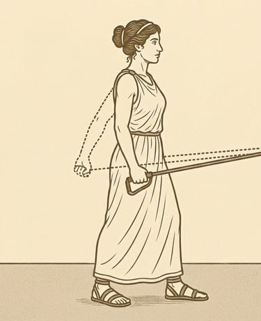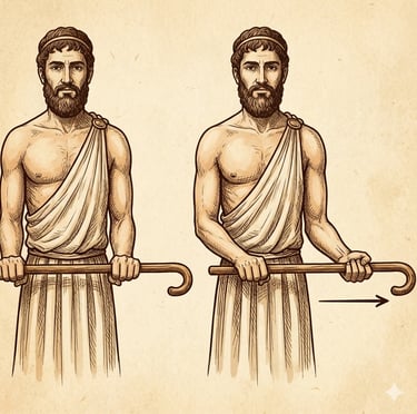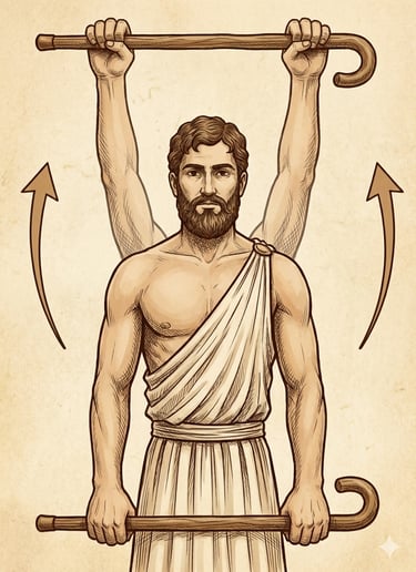 Allongé sur le dos puis debout. Tenir le bâton à deux mains (Comme indiqué ici pour une épaule gauche douloureuse) :