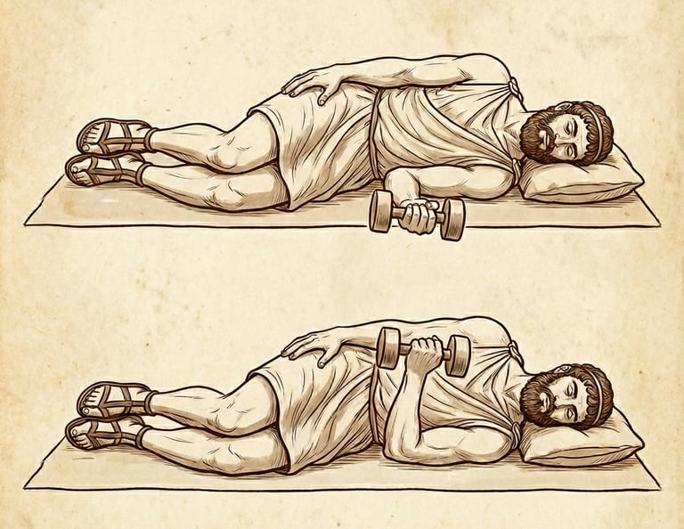 Allongé sur le côté non douloureux : coude fléchi à 90°.