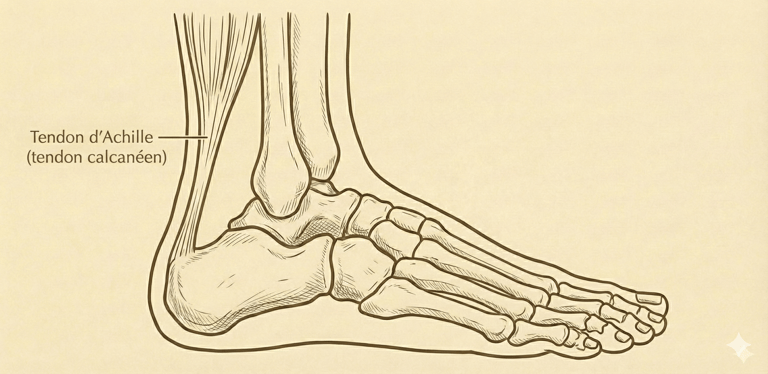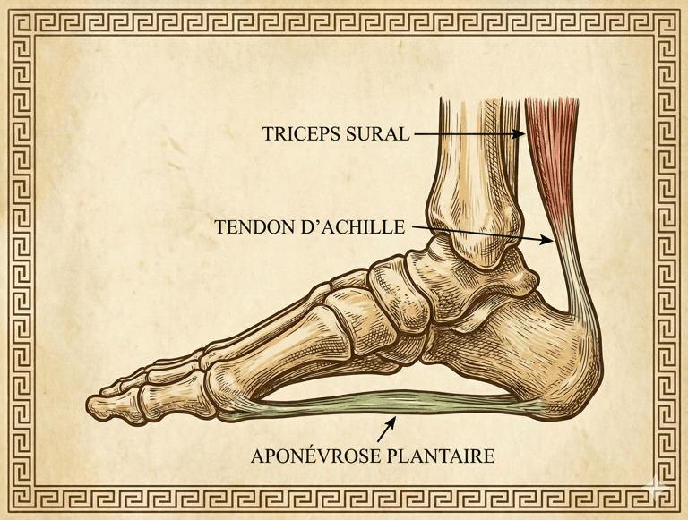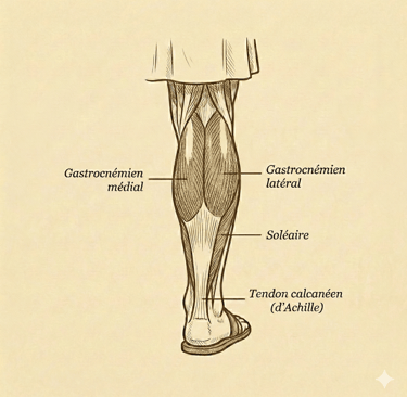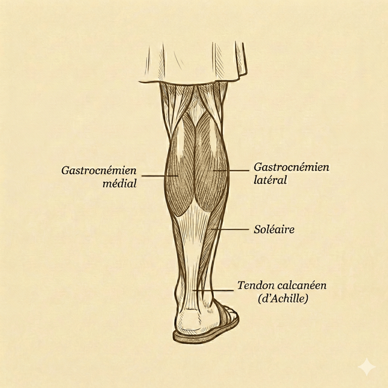 Le triceps sural s'insère sur le tendon calcanéen, communément appelé tendon d'Achille.