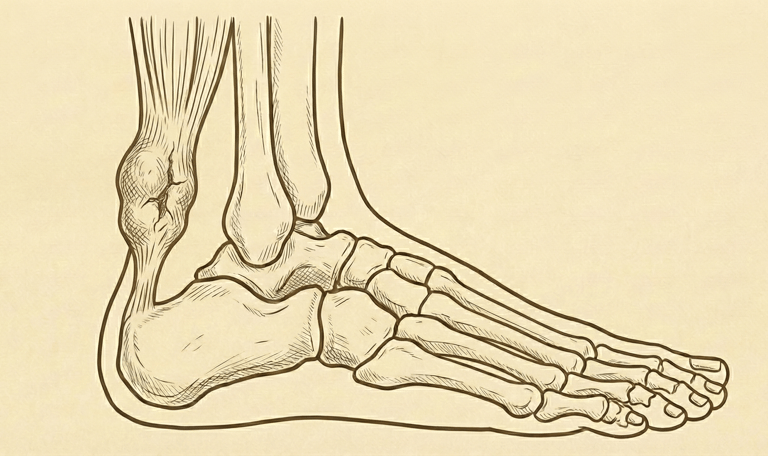 Excroissance osseuse postéro-supérieure du calcanéus responsable d'un conflit ostéotendineux favorisant la tendinopathie, parfois associée à une bursite rétro-calcanéenne.