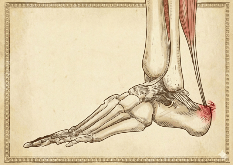 La tendinopathie d'Achille est parfois associée à une aponévropathie plantaire en raison de la continuité anatomique par une fine lame fibreuse :